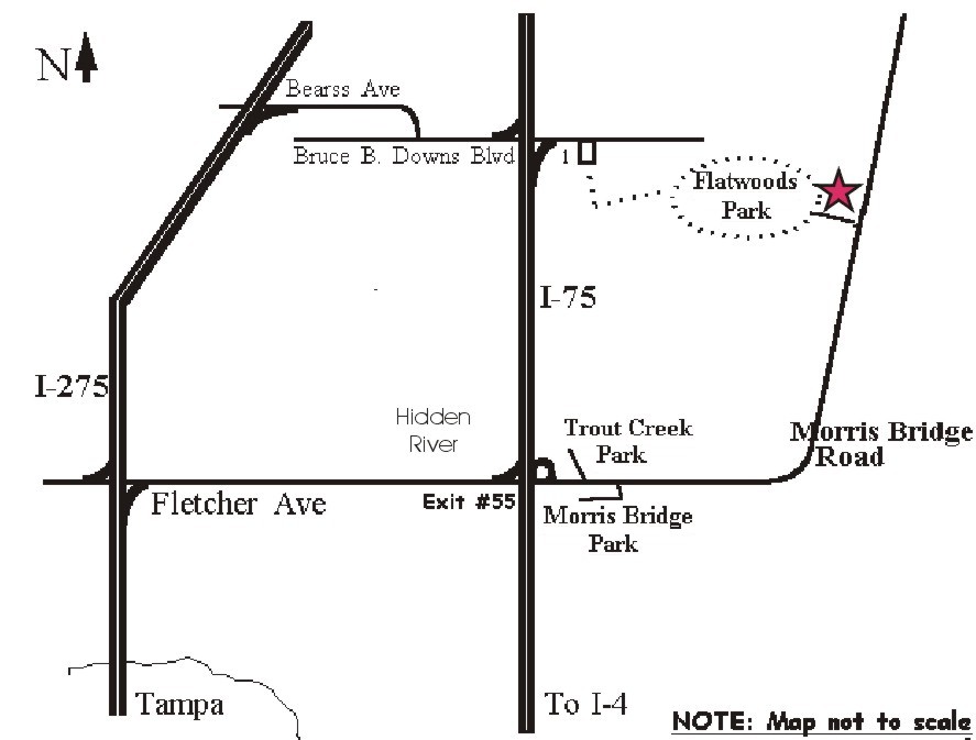 Exit 55 (the Hidden River exit) and go east 4.7 miles. (Fletcher Ave.